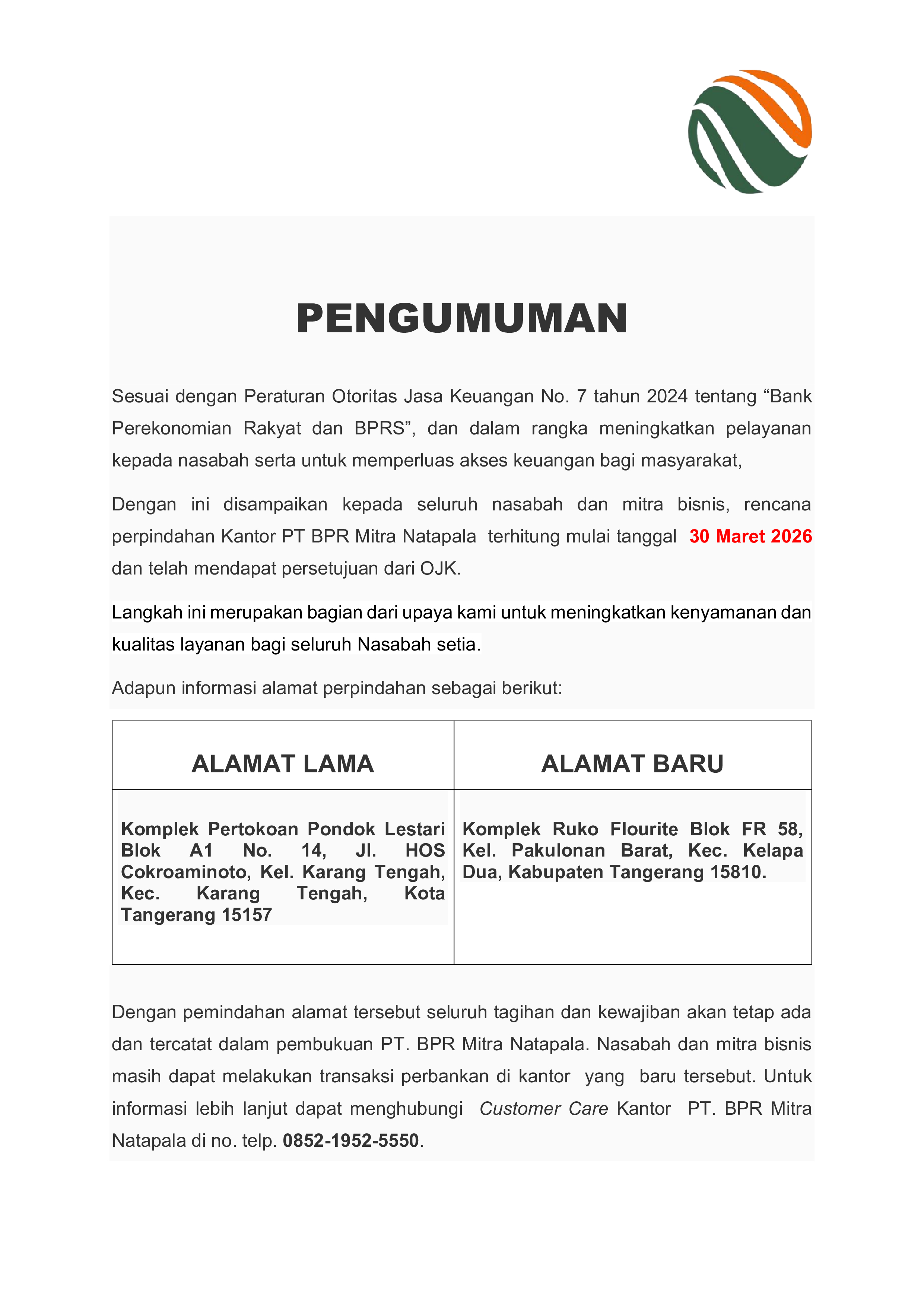 PT. BPR Mitra Natapala menawarkan beberapa produk dan layanan yang dapat membantu masyarakat